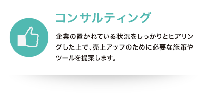 ターゲットに合わせた企画立案・営業戦略のプランニングなどもご提案いたします。